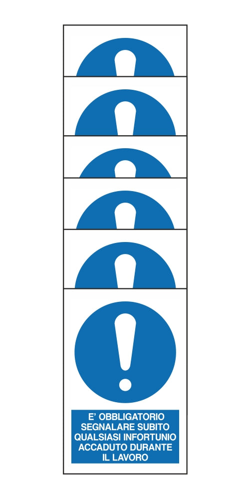 KIT DI 6 ADESIVI RETTANGOLARI - E' OBBLIGATORIO SEGNALARE SUBITO QUALSIASI INFORTUNIO - Pittogramma ISO 7010 Con Stampa Diretta U.V. (IDEALE ANCHE PER ESTERNO)