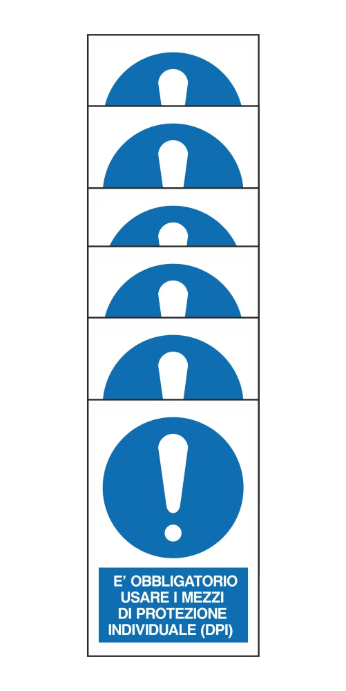 KIT DI 6 ADESIVI RETTANGOLARI - E' OBBLIGATORIO USARE I MEZZI DI PROTEZIONE INDIVIDUALE - Pittogramma ISO 7010 Con Stampa Diretta U.V. (IDEALE ANCHE PER ESTERNO)