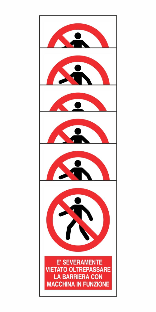 KIT DI 6 ADESIVI RETTANGOLARI - È SEVERAMENTE VIETATO OLTREPASSARE LA BARRIERA - Pittogramma ISO 7010 Con Stampa Diretta U.V. (IDEALE ANCHE PER ESTERNO)