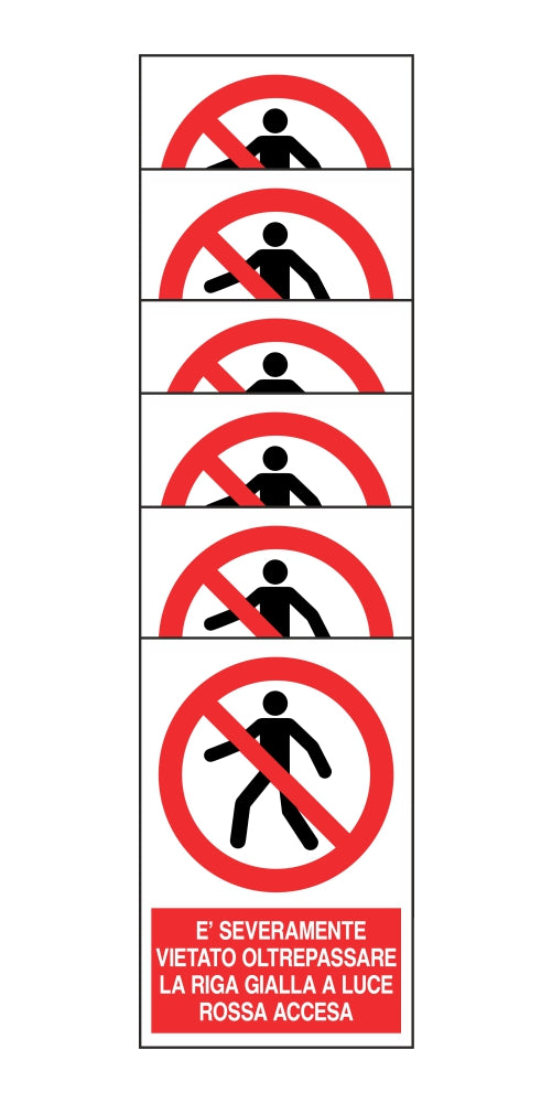 KIT DI 6 ADESIVI RETTANGOLARI - È SEVERAMENTE VIETATO OLTREPASSARE LA RIGA GIALLA... - Pittogramma ISO 7010 Con Stampa Diretta U.V. (IDEALE ANCHE PER ESTERNO)