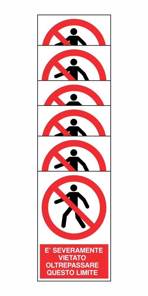 KIT DI 6 ADESIVI RETTANGOLARI - È SEVERAMENTE VIETATO OLTREPASSARE QUESTO LIMITE - Pittogramma ISO 7010 Con Stampa Diretta U.V. (IDEALE ANCHE PER ESTERNO)