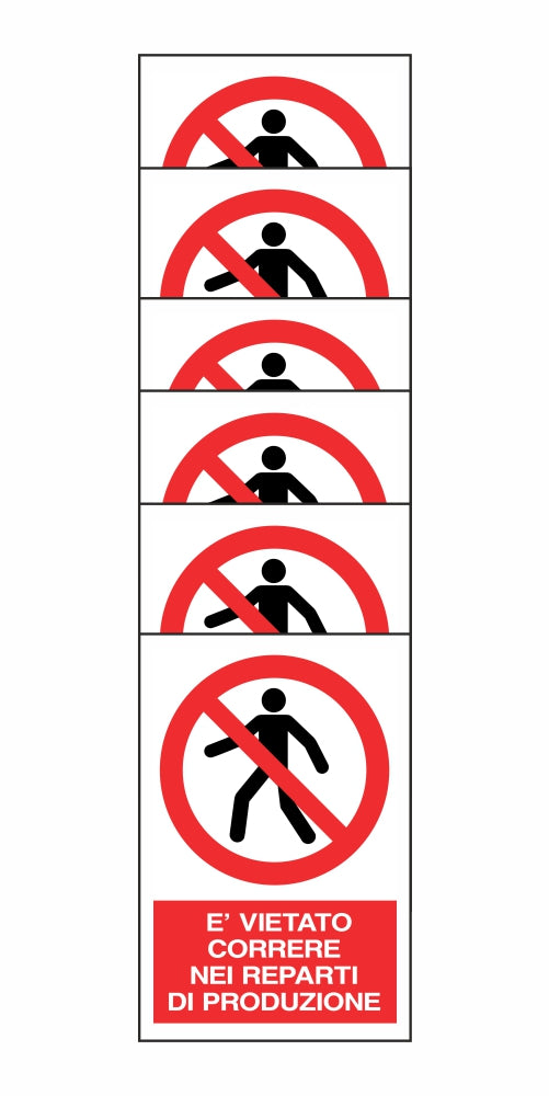 KIT DI 6 ADESIVI RETTANGOLARI - È VIETATO CORRERE NEI REPARTI DI PRODUZIONE - Pittogramma ISO 7010 Con Stampa Diretta U.V. (IDEALE ANCHE PER ESTERNO)