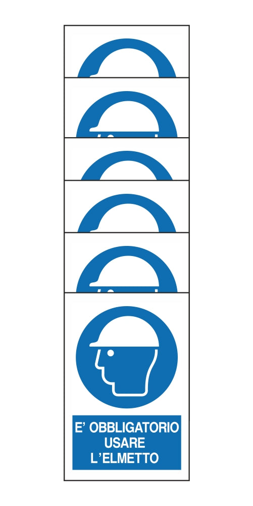 KIT DI 6 ADESIVI RETTANGOLARI - E'OBBLIGATORIO USARE L'ELMETTO - Pittogramma ISO 7010 Con Stampa Diretta U.V. (IDEALE ANCHE PER ESTERNO)