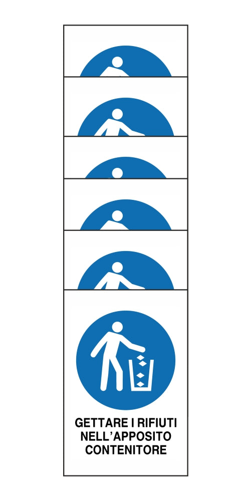 KIT DI 6 ADESIVI RETTANGOLARI - GETTARE I RIFIUTI NELL'APPOSITO CONTENITORE - Pittogramma ISO 7010 Con Stampa Diretta U.V. (IDEALE ANCHE PER ESTERNO)