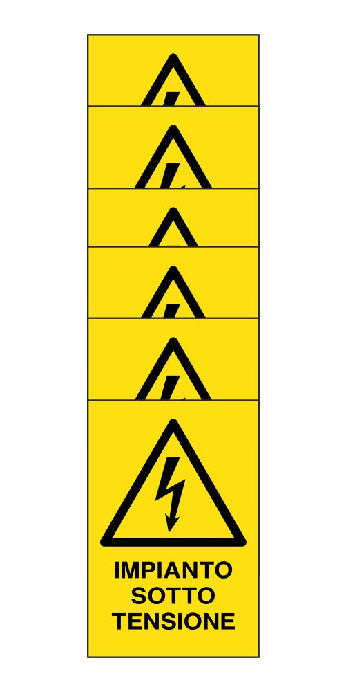 KIT DI 6 ADESIVI RETTANGOLARI - impianto sotto tensione - Pittogramma ISO 7010 Con Stampa Diretta U.V. (IDEALE ANCHE PER ESTERNO)