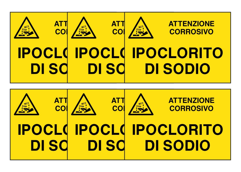 KIT DI 6 ADESIVI RETTANGOLARI - IPOCLORITO DI SODIO - Pittogramma ISO 7010 Con Stampa Diretta U.V. (IDEALE ANCHE PER ESTERNO)