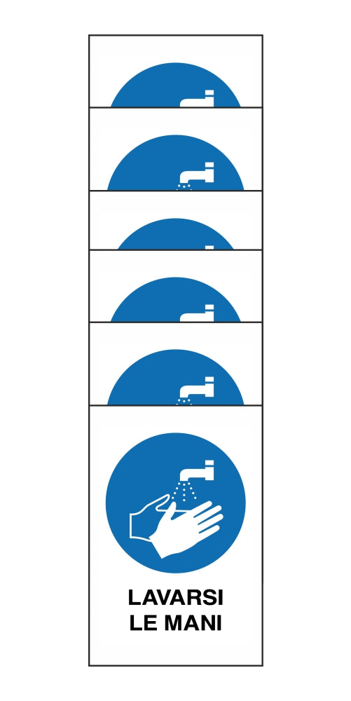 KIT DI 6 ADESIVI RETTANGOLARI - lavarsi le mani - Pittogramma ISO 7010 Con Stampa Diretta U.V. (IDEALE ANCHE PER ESTERNO)