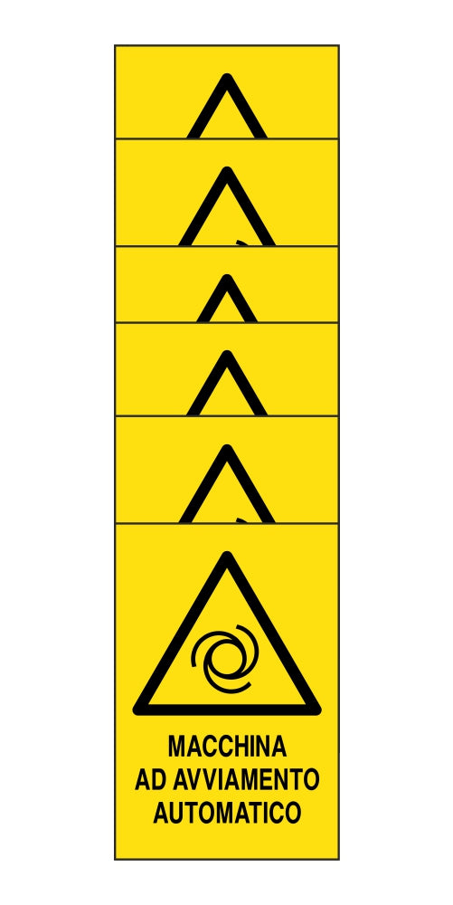 KIT DI 6 ADESIVI RETTANGOLARI - macchina ad avviamento automatico - Pittogramma ISO 7010 Con Stampa Diretta U.V. (IDEALE ANCHE PER ESTERNO)