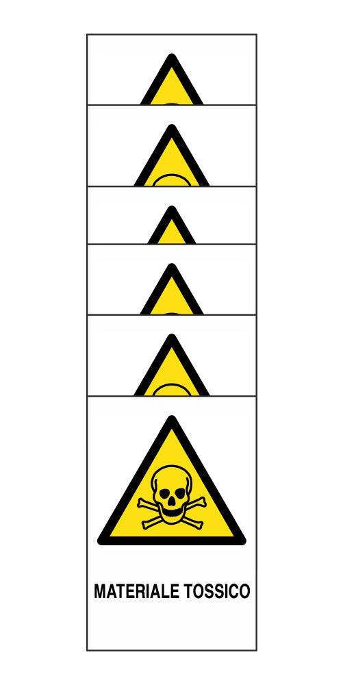 KIT DI 6 ADESIVI RETTANGOLARI - materiale tossico - Pittogramma ISO 7010 Con Stampa Diretta U.V. (IDEALE ANCHE PER ESTERNO)