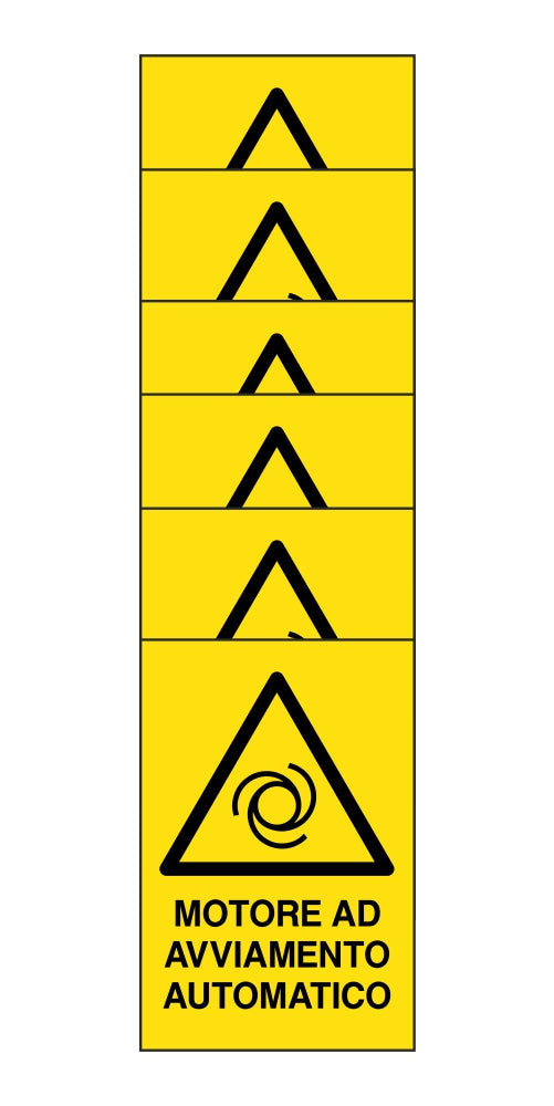KIT DI 6 ADESIVI RETTANGOLARI - motore ad avviamento automatico - Pittogramma ISO 7010 Con Stampa Diretta U.V. (IDEALE ANCHE PER ESTERNO)