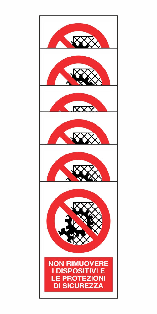 KIT DI 6 ADESIVI RETTANGOLARI - NON RIMUOVERE I DISPOSITIVI E LE PROTEZIONI DI SICUREZZA - Pittogramma ISO 7010 Con Stampa Diretta U.V. (IDEALE ANCHE PER ESTERNO)
