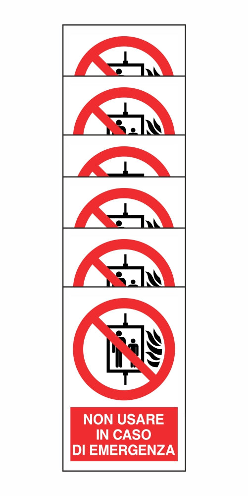 KIT DI 6 ADESIVI RETTANGOLARI - NON USARE IN CASO DI EMERGENZA - Pittogramma ISO 7010 Con Stampa Diretta U.V. (IDEALE ANCHE PER ESTERNO)