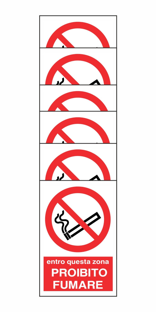 KIT DI 6 ADESIVI RETTANGOLARI - ENTRO QUESTA ZONA PROIBITO FUMARE - Pittogramma ISO 7010 Con Stampa Diretta U.V. (IDEALE ANCHE PER ESTERNO)