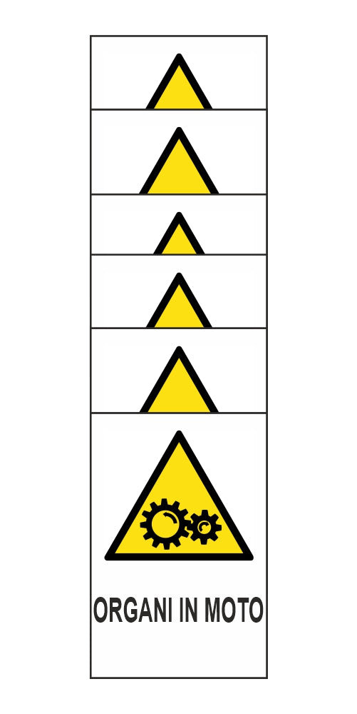 KIT DI 6 ADESIVI RETTANGOLARI - ORGANI IN MOTO - Pittogramma ISO 7010 Con Stampa Diretta U.V. (IDEALE ANCHE PER ESTERNO)