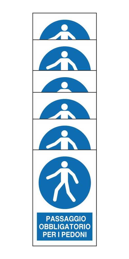 KIT DI 6 ADESIVI RETTANGOLARI - PASSAGGIO OBBLIGATORIO PER I PEDONI - Pittogramma ISO 7010 Con Stampa Diretta U.V. (IDEALE ANCHE PER ESTERNO)