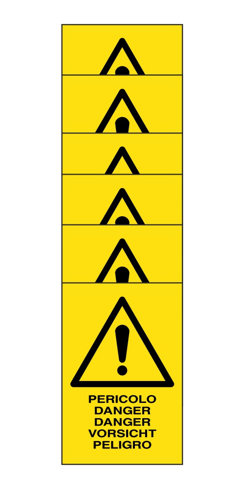 KIT DI 6 ADESIVI RETTANGOLARI - PERICOLO 5 lingue - Pittogramma ISO 7010 Con Stampa Diretta U.V. (IDEALE ANCHE PER ESTERNO)