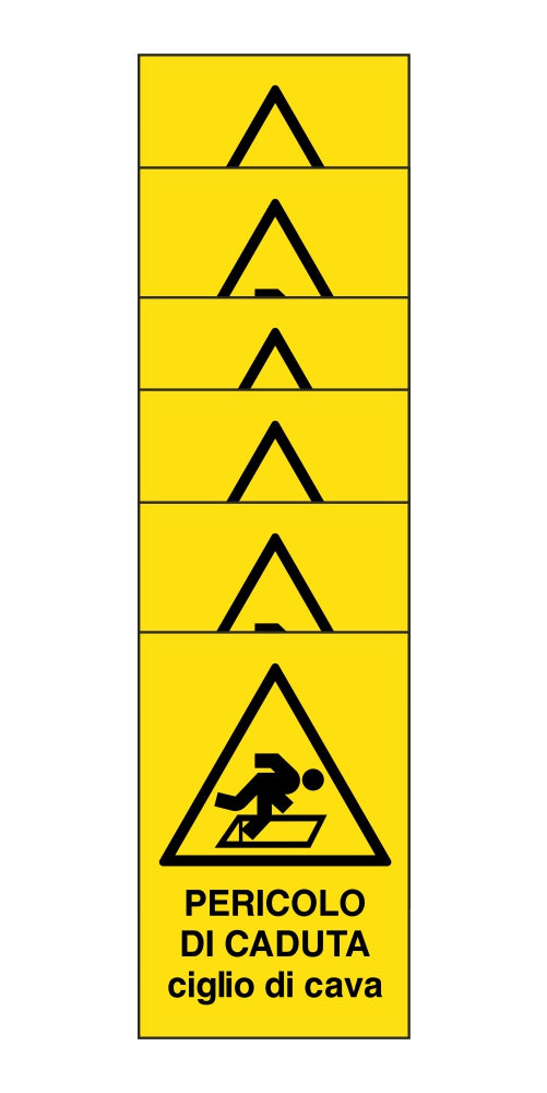 KIT DI 6 ADESIVI RETTANGOLARI - PERICOLO DI CADUTA CIGLIO DI CAVA - Pittogramma ISO 7010 Con Stampa Diretta U.V. (IDEALE ANCHE PER ESTERNO)