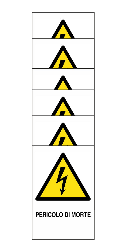 KIT DI 6 ADESIVI RETTANGOLARI - PERICOLO DI MORTE - Pittogramma ISO 7010 Con Stampa Diretta U.V. (IDEALE ANCHE PER ESTERNO)