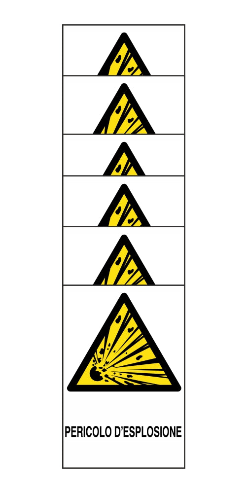 KIT DI 6 ADESIVI RETTANGOLARI - pericolo esplosione - Pittogramma ISO 7010 Con Stampa Diretta U.V. (IDEALE ANCHE PER ESTERNO)