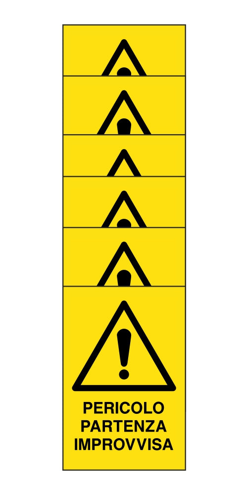 KIT DI 6 ADESIVI RETTANGOLARI - pericolo partenza improvvisa - Pittogramma ISO 7010 Con Stampa Diretta U.V. (IDEALE ANCHE PER ESTERNO)