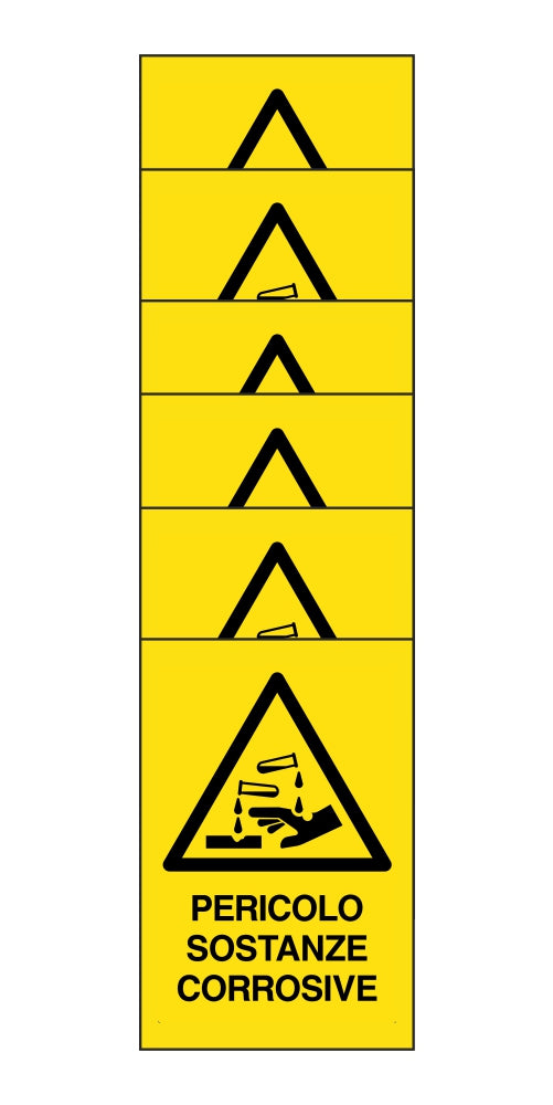 KIT DI 6 ADESIVI RETTANGOLARI - pericolo sostanze corrosive - Pittogramma ISO 7010 Con Stampa Diretta U.V. (IDEALE ANCHE PER ESTERNO)