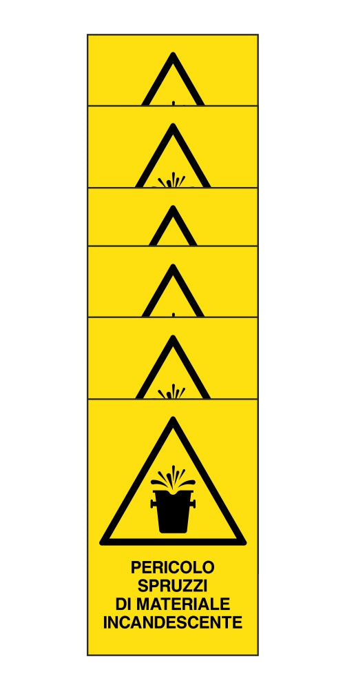 KIT DI 6 ADESIVI RETTANGOLARI - pericolo spruzzi di materiale incandescente - Pittogramma ISO 7010 Con Stampa Diretta U.V. (IDEALE ANCHE PER ESTERNO)