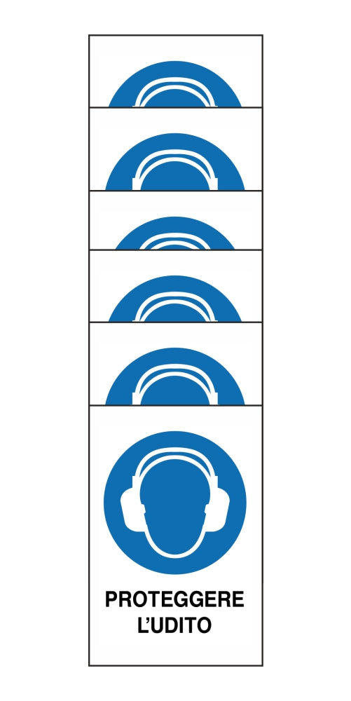 KIT DI 6 ADESIVI RETTANGOLARI - proteggere l'udito - Pittogramma ISO 7010 Con Stampa Diretta U.V. (IDEALE ANCHE PER ESTERNO)