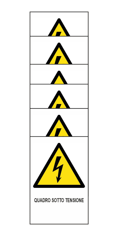 KIT DI 6 ADESIVI RETTANGOLARI - QUADRO SOTTO TENSIONE - Pittogramma ISO 7010 Con Stampa Diretta U.V. (IDEALE ANCHE PER ESTERNO)