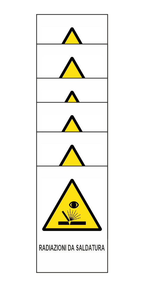 KIT DI 6 ADESIVI RETTANGOLARI - RADIAZIONI DA SALDATURA - Pittogramma ISO 7010 Con Stampa Diretta U.V. (IDEALE ANCHE PER ESTERNO)