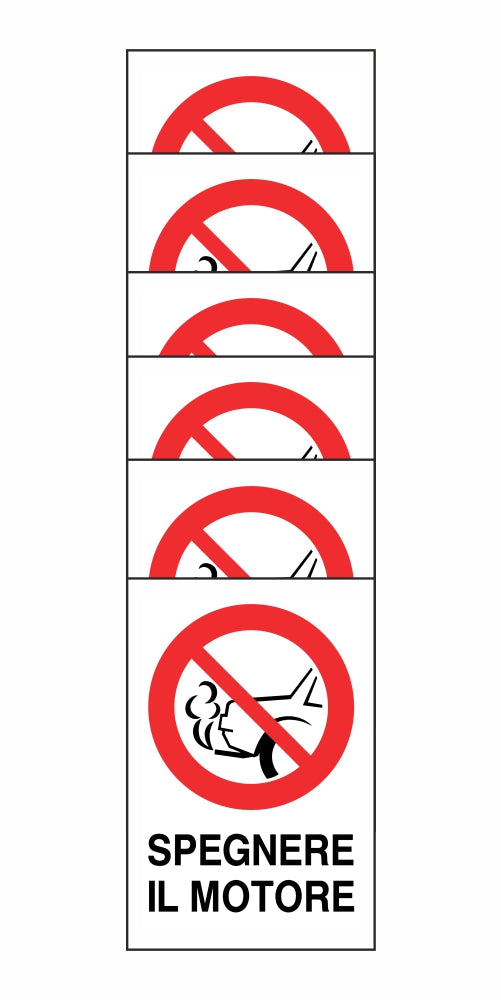 KIT DI 6 ADESIVI RETTANGOLARI - SPEGNERE IL MOTORE - Pittogramma ISO 7010 Con Stampa Diretta U.V. (IDEALE ANCHE PER ESTERNO)