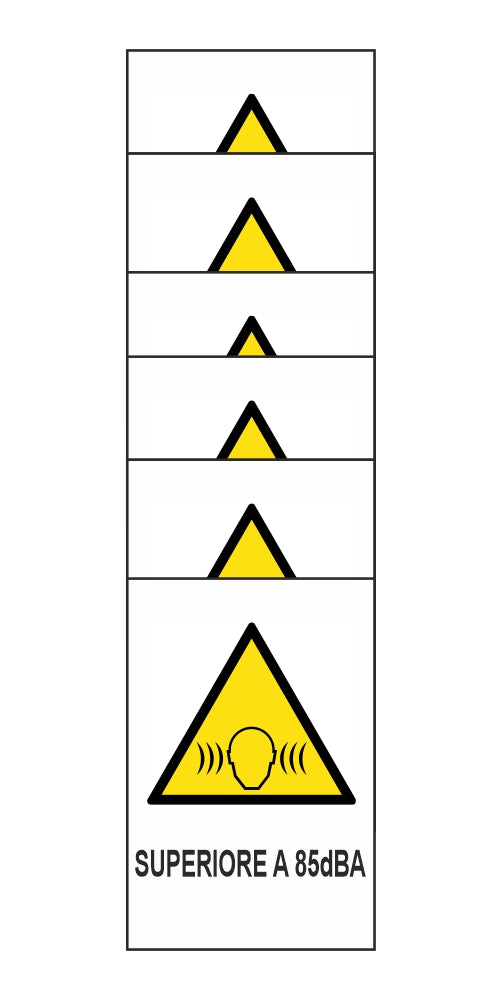 KIT DI 6 ADESIVI RETTANGOLARI - superiore a 85dBA - Pittogramma ISO 7010 Con Stampa Diretta U.V. (IDEALE ANCHE PER ESTERNO)