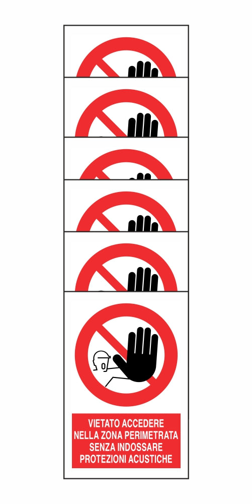 KIT DI 6 ADESIVI RETTANGOLARI - VIETATO ACCEDERE NELLA ZONA PERIMETRATA SENZA - Pittogramma ISO 7010 Con Stampa Diretta U.V. (IDEALE ANCHE PER ESTERNO)