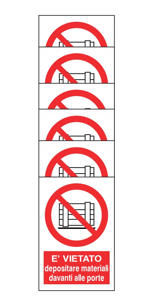 KIT DI 6 ADESIVI RETTANGOLARI - VIETATO DEPOSITARE MATERIALI DAVANTI ALLE PORTE - Pittogramma ISO 7010 Con Stampa Diretta U.V. (IDEALE ANCHE PER ESTERNO)