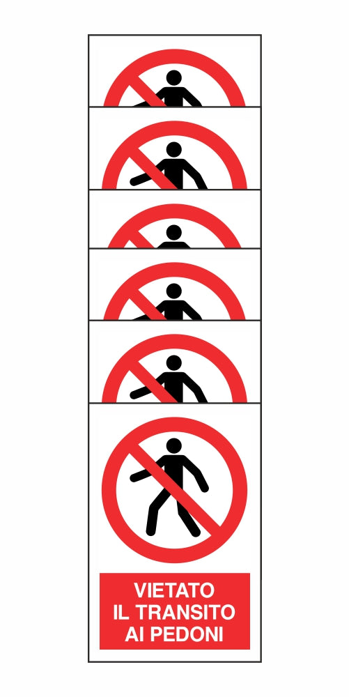 KIT DI 6 ADESIVI RETTANGOLARI - VIETATO IL TRANSITO AI PEDONI - Pittogramma ISO 7010 Con Stampa Diretta U.V. (IDEALE ANCHE PER ESTERNO)