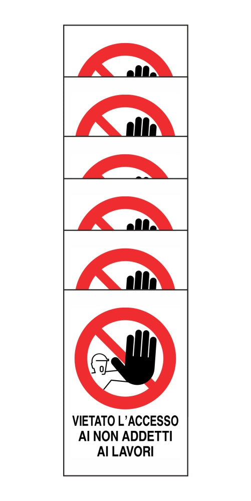 KIT DI 6 ADESIVI RETTANGOLARI - VIETATO L'ACCESSO AI NON ADDETTI AI LAVORI - Pittogramma ISO 7010 Con Stampa Diretta U.V. (IDEALE ANCHE PER ESTERNO)