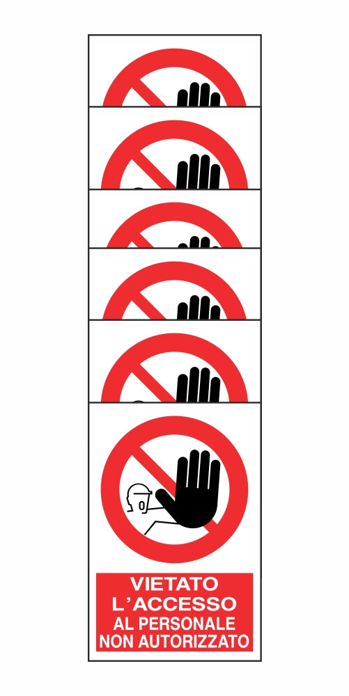 KIT DI 6 ADESIVI RETTANGOLARI - VIETATO L'ACCESSO AL PERSONALE NON AUTORIZZATO - Pittogramma ISO 7010 Con Stampa Diretta U.V. (IDEALE ANCHE PER ESTERNO)