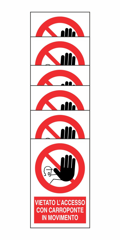 KIT DI 6 ADESIVI RETTANGOLARI - VIETATO L'ACCESSO CON CARROPONTE IN MOVIMENTO - Pittogramma ISO 7010 Con Stampa Diretta U.V. (IDEALE ANCHE PER ESTERNO)