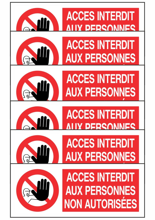 KIT DI 6 ADESIVI UNI - ACCES INTERDIT AUX PERSONNES NON AUTORISEES - Pittogramma ISO 7010 Con Stampa Diretta U.V. (IDEALE ANCHE PER ESTERNO)