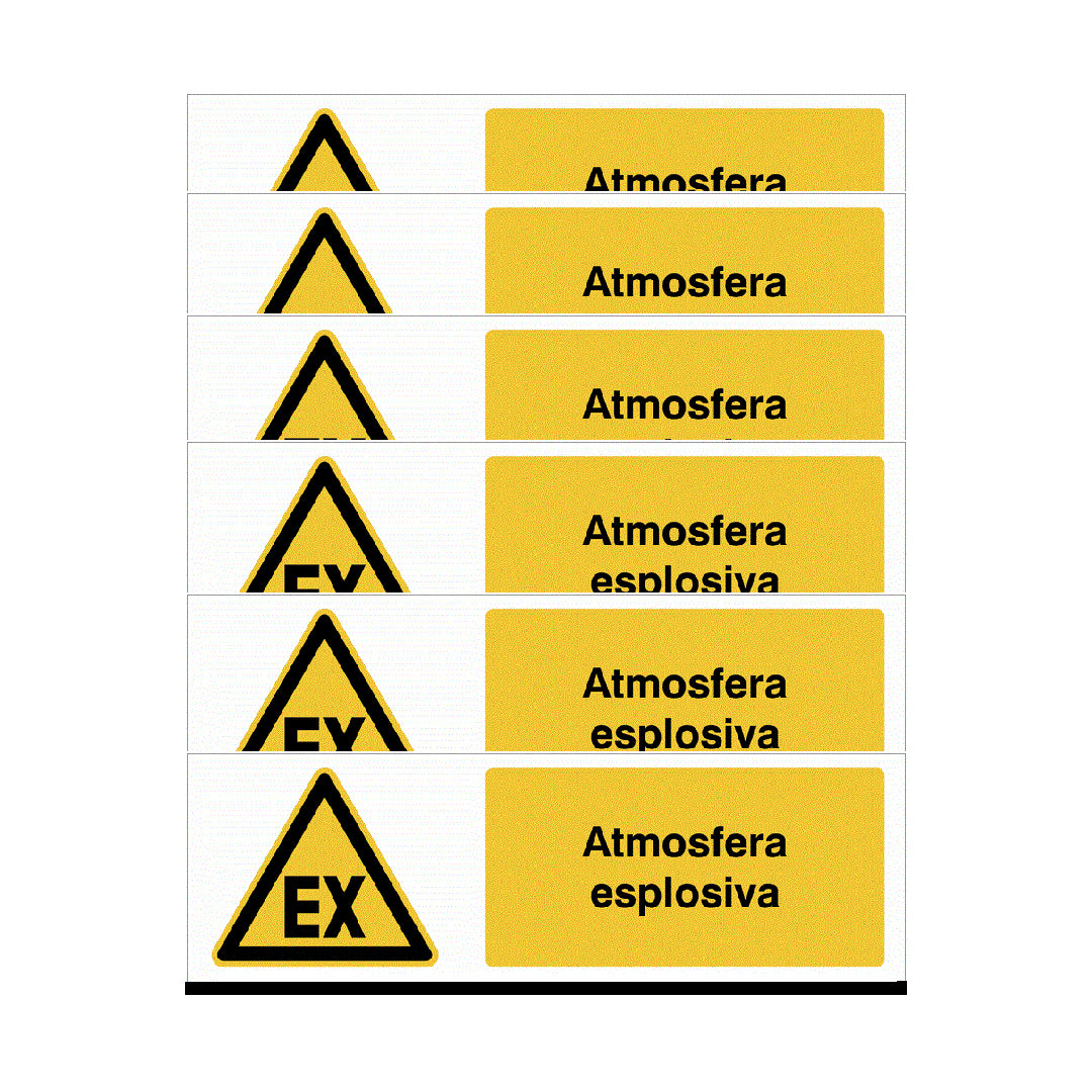 KIT DI 6 ADESIVI UNI -"Atmosfera esplosiva"- Pittogramma ISO 7010 Con Stampa Diretta U.V. (IDEALE ANCHE PER ESTERNO)