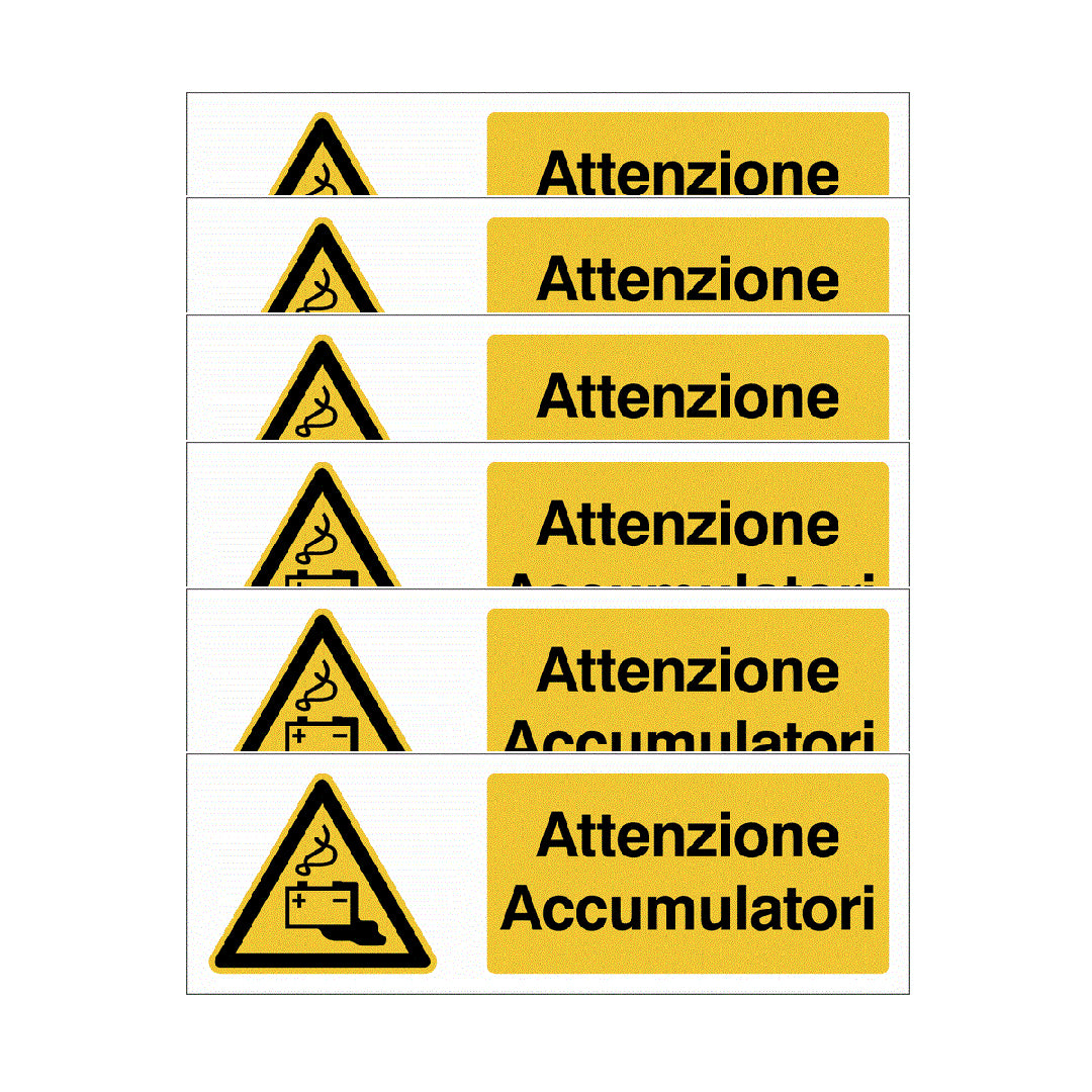 KIT DI 6 ADESIVI UNI -Attenzione accumulatori- Pittogramma ISO 7010 Con Stampa Diretta U.V. (IDEALE ANCHE PER ESTERNO)