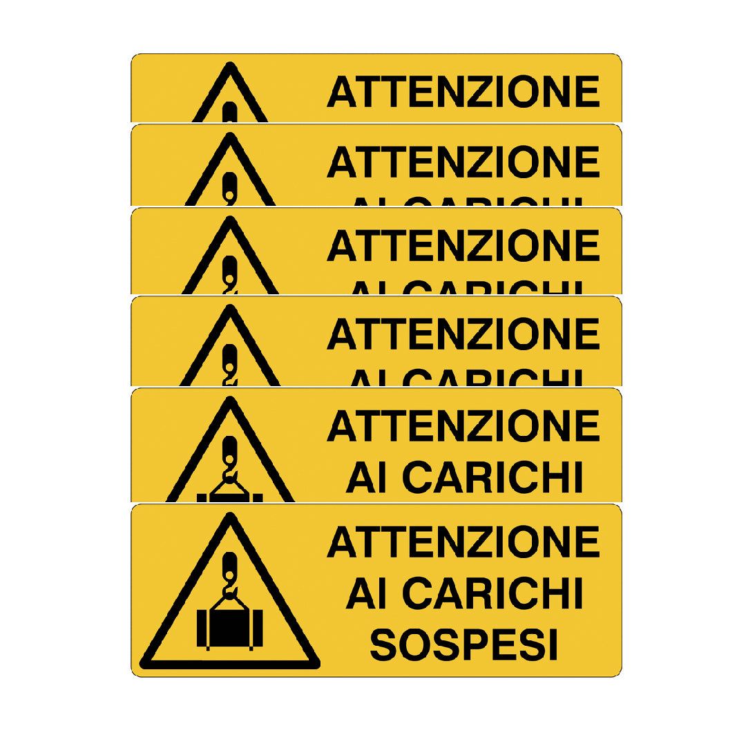 KIT DI 6 ADESIVI UNI -Attenzione ai carichi sospesi- Pittogramma ISO 7010 Con Stampa Diretta U.V. (IDEALE ANCHE PER ESTERNO)