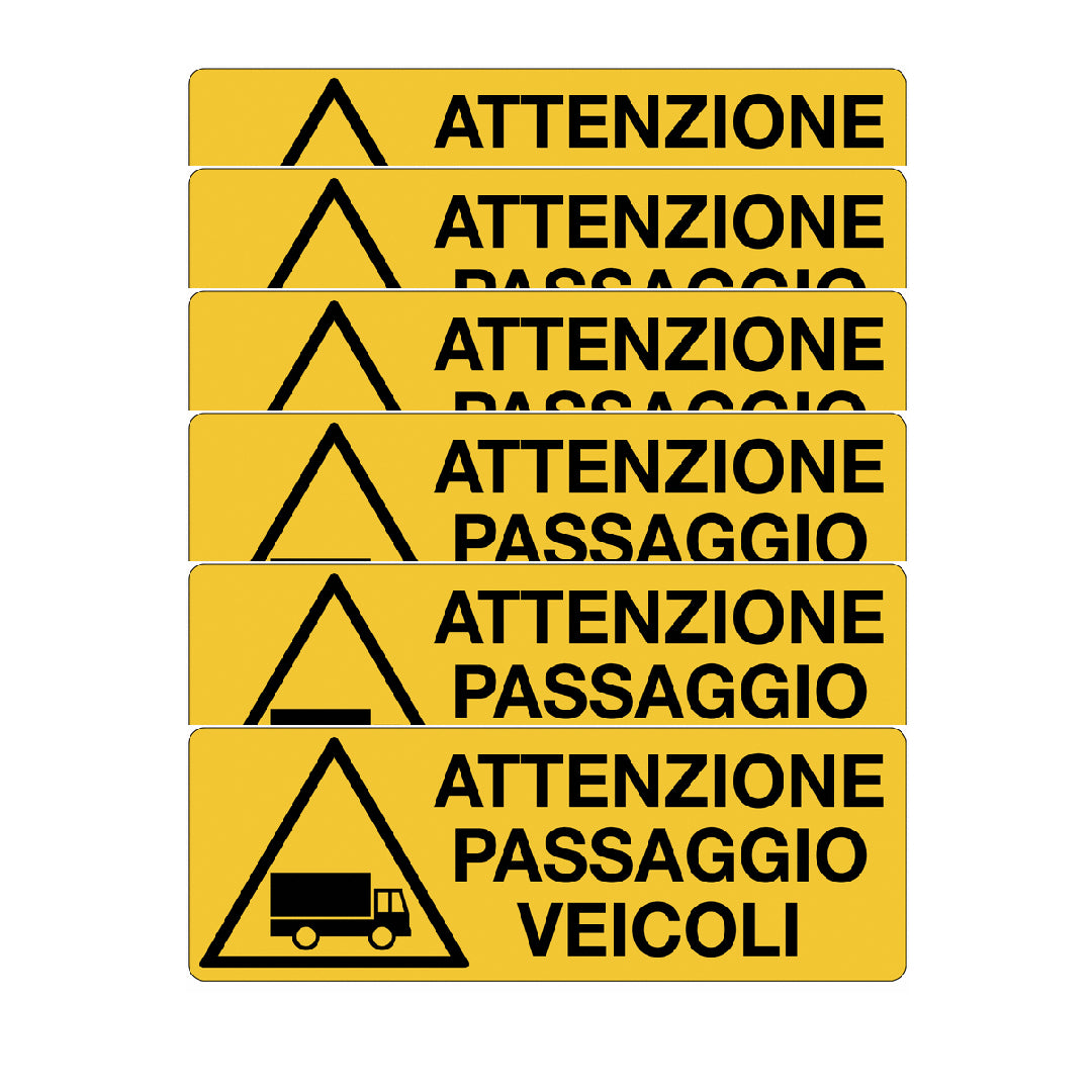 KIT DI 6 ADESIVI UNI -Attenzione passaggio veicoli- Pittogramma ISO 7010 Con Stampa Diretta U.V. (IDEALE ANCHE PER ESTERNO)