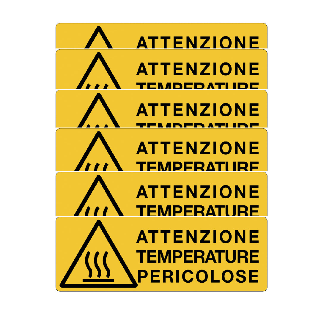 KIT DI 6 ADESIVI UNI - Attenzione temperature pericolose- Pittogramma ISO 7010 Con Stampa Diretta U.V. (IDEALE ANCHE PER ESTERNO)