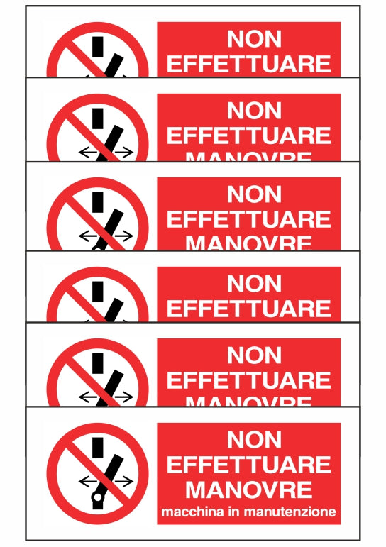 KIT DI 6 ADESIVI UNI - NON EFFETTUARE MANOVRE MACCHINA IN MANUTENZIONE - Pittogramma ISO 7010 Con Stampa Diretta U.V. (IDEALE ANCHE PER ESTERNO)