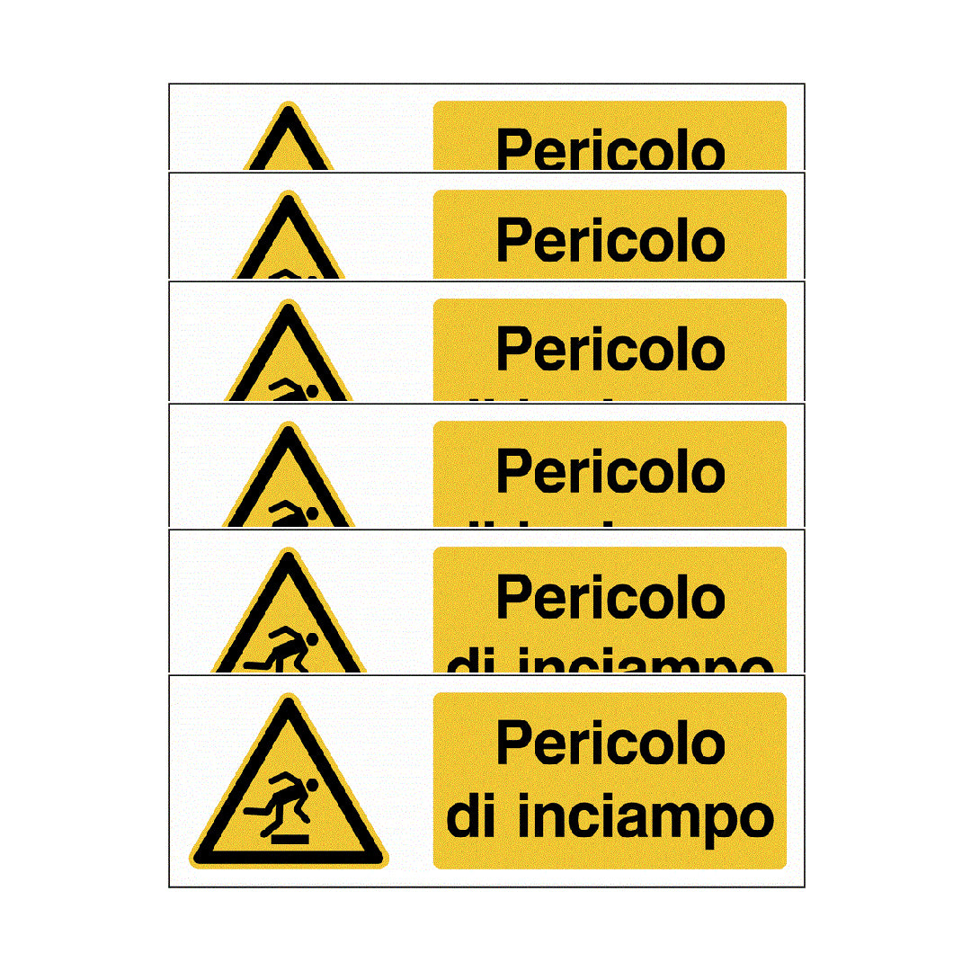 KIT DI 6 ADESIVI UNI - Pericolo di inciampo - Pittogramma ISO 7010 Con Stampa Diretta U.V. (IDEALE ANCHE PER ESTERNO)