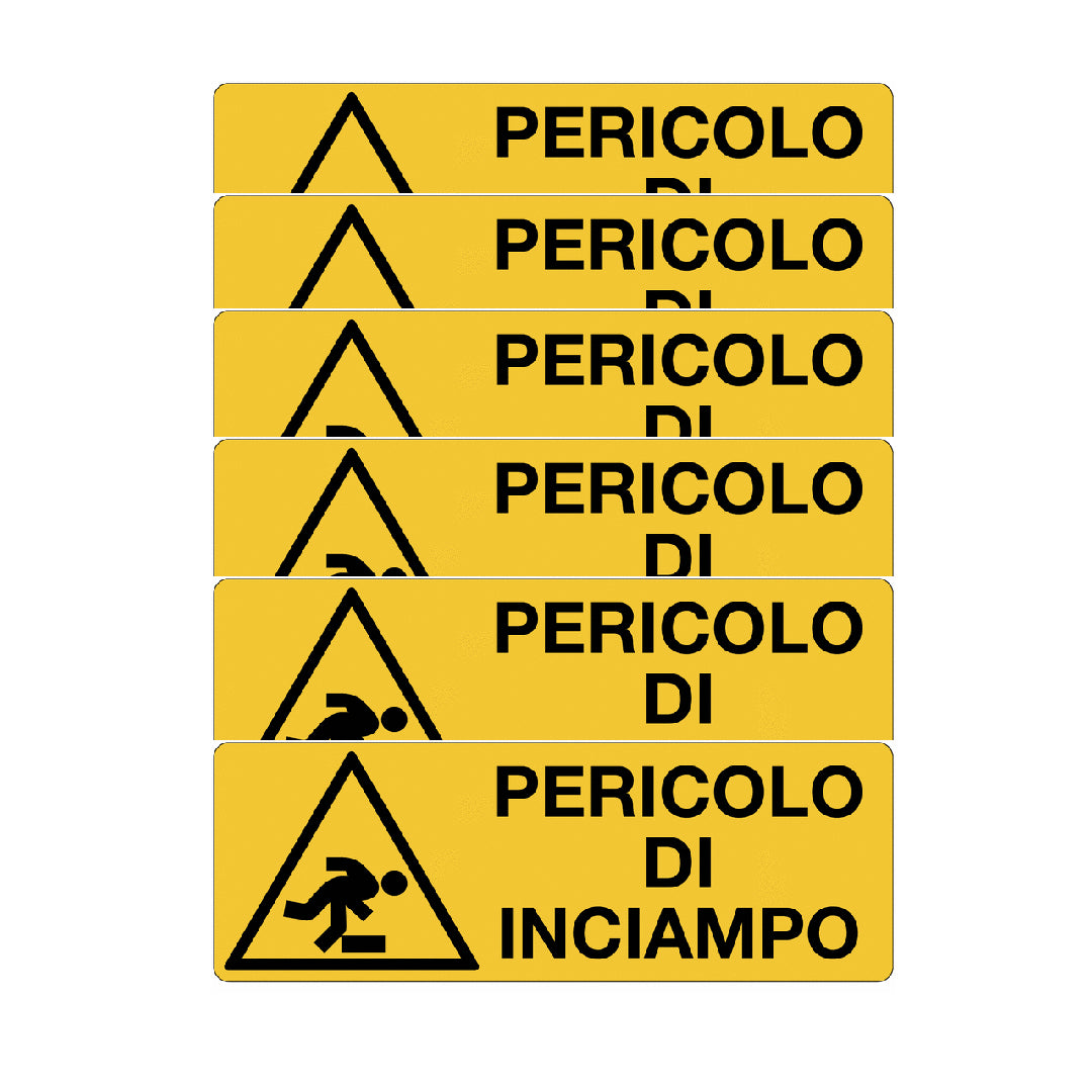 KIT DI 6 ADESIVI UNI - Pericolo di inciampo- Pittogramma ISO 7010 Con Stampa Diretta U.V. (IDEALE ANCHE PER ESTERNO)