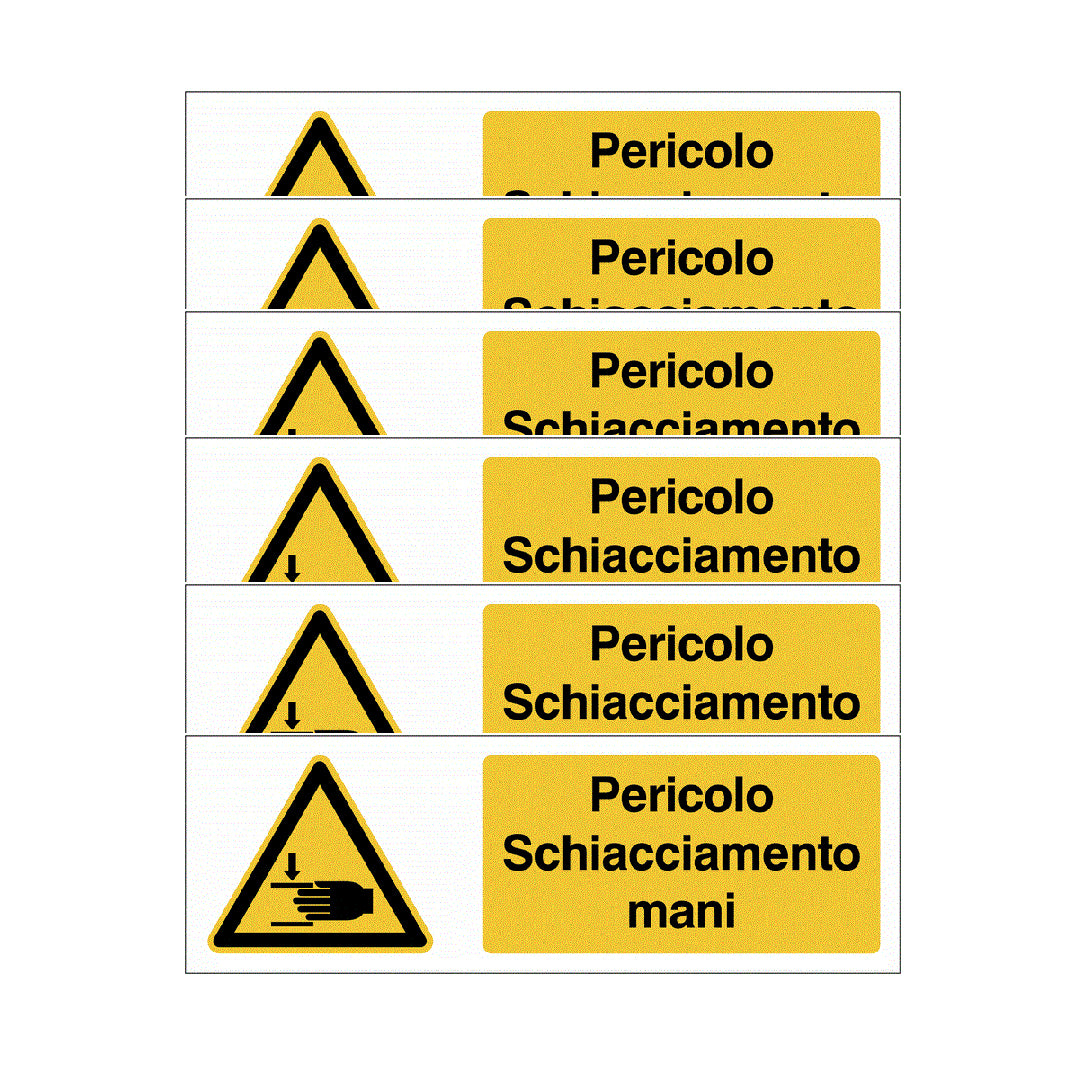 KIT DI 6 ADESIVI UNI -"Pericolo di schiacciamento delle mani"- Pittogramma ISO 7010 Con Stampa Diretta U.V. (IDEALE ANCHE PER ESTERNO)