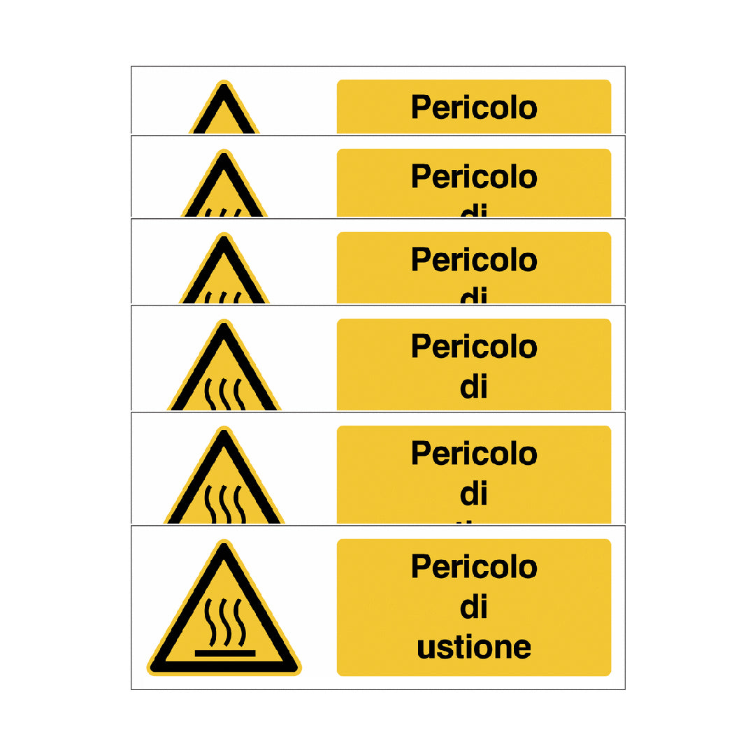 KIT DI 6 ADESIVI UNI - Pericolo di ustione - Pittogramma ISO 7010 Con Stampa Diretta U.V. (IDEALE ANCHE PER ESTERNO)