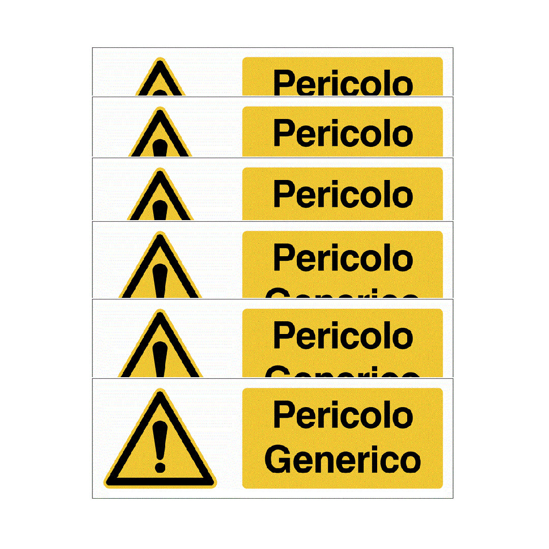 KIT DI 6 ADESIVI UNI - "Pericolo generico"- Pittogramma ISO 7010 Con Stampa Diretta U.V. (IDEALE ANCHE PER ESTERNO)