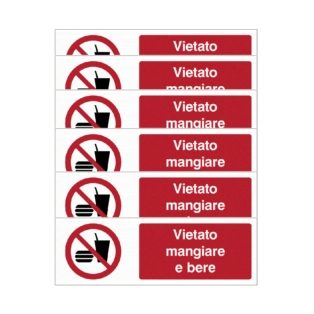 KIT DI 6 ADESIVI UNI - “Vietato bere e/o mangiare”- Pittogramma ISO 7010 Con Stampa Diretta U.V. (IDEALE ANCHE PER ESTERNO)